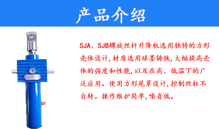 SJA、SJB螺旋絲桿升降機具體型號有:SJA5、SJA10、SJA20、SJA50、SJA80、SJA100、SJA200、SJA300、SJA450、SJA750、SJA1000