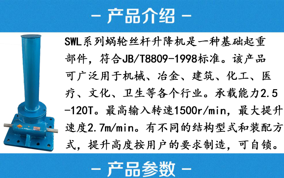 SL系列蝸輪絲桿升降機是一種基礎起重部件,符合JB/T8809-1998(原JB/Z04391-86)標準。