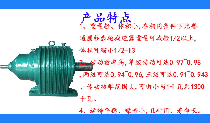 1、重量輕、體積小,在相同條件下比普通圓柱齒輪減速器重量可減輕1/2以上,體積可縮小1/2-132、傳動(dòng)效率高,單級(jí)傳動(dòng)可達(dá)0.97~0.98,兩級(jí)可達(dá)0.94~0.96,三級(jí)可達(dá)0.91~0.943、傳動(dòng)功率范圍大,可由小與1千瓦到1300千瓦。4、運(yùn)轉(zhuǎn)平穩(wěn)、噪音小,且耐用、壽命長。