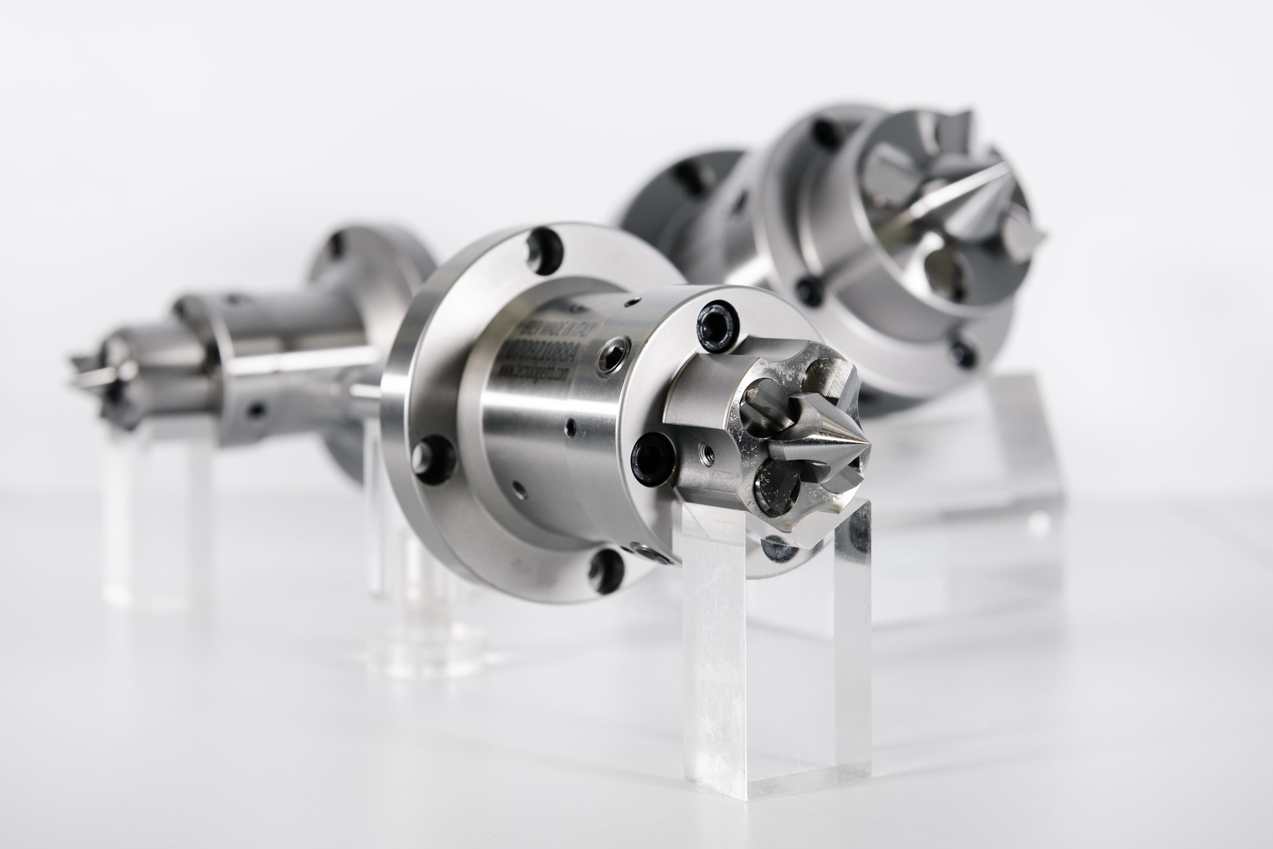 Ø 精車和磨削系列產(chǎn)品中,中心定位頂尖固定,油(氣)缸推動(dòng)驅(qū)動(dòng)卡爪嵌入工件端面, 配合尾座活頂尖,加工精度可達(dá)μ級(jí)。