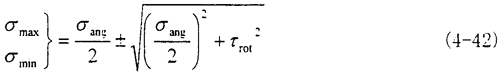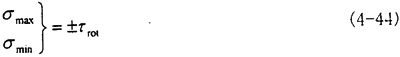 此時的應(yīng)力情況屬于三向應(yīng)力狀態(tài),所以其分析過程和徑向不對中90°以及270°以情況相似,只是這里還有了附加的軸向拉應(yīng)力和附加的角向應(yīng)力,將各個應(yīng)力值σxx=σax+σang,σyy=0,σzz=0,τxy=τrot,τyz=0,τzx=τrad分別代入式(4-29)(4-30)(4-31)中,可以得到