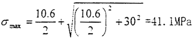 此時主平面上的正應(yīng)力平面的角度有這種關(guān)系:tg2α2=-∞,所以有α2=-45°或-135°,最大主應(yīng)力值為σmax=30MPa