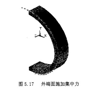 選擇Main Menu>>Solution>Define Loads>Apply>Structural>Force>Moment>On Nodes,在圓環(huán)外端面最上方的圓的節(jié)點上依次施加集中力,結果如圖5.17所示。