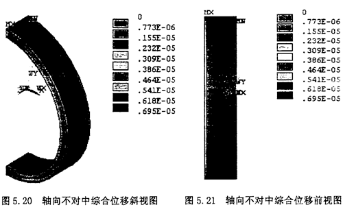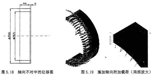 軸向不對中時,根據(jù)實際情況取中量為△ax=5mm,則可以認為外端面沿z軸方向的位移為5mm,如圖5.18所示。產生的附加的軸向載荷按照。選擇選擇Main Menu>>Solution>Define