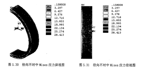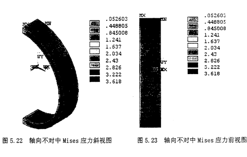 2.顯示節(jié)點的Von Mises應力云圖;選擇Main Menu>General Postproc>Plot Result>NodalSolu,在彈出的對話框內選擇“Stress”,第二欄內選擇“Von Mises Stress”,則其顯示的云圖如圖5.22,5.23所示