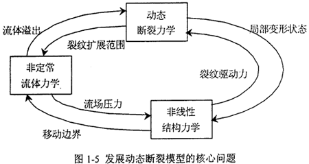 裂紋動態(tài)擴(kuò)展與止裂問題涉及的是流體/結(jié)構(gòu)/斷裂相互作用又相互影響的過程,如圖1-5所示。流體/結(jié)構(gòu)/斷裂耦合作用下的動態(tài)裂紋擴(kuò)展包括計算結(jié)構(gòu)力學(xué)、流體力學(xué)和斷裂力學(xué)等相關(guān)學(xué)科的綜合: