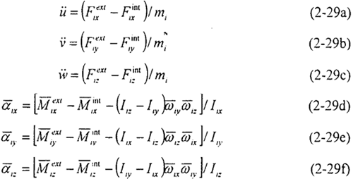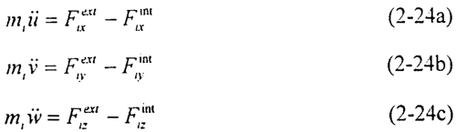 其中i代表節(jié)點號,mi為節(jié)點質(zhì)量,,,為平動加速度,為外力,為變形引起的內(nèi)力(其中j=1,2,3,分別表示三個坐標(biāo)軸方向x,y,z)。