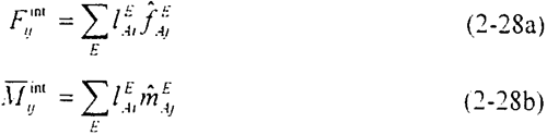 利用疊加原理,將每一個單元內(nèi)的節(jié)點上的內(nèi)力和內(nèi)彎矩分別求和,可得到節(jié)點上的相應(yīng)分量: