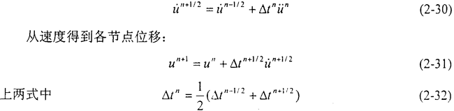 對于每一時間步長,由運動方程首先解出各節(jié)點的平動加速度,然后根據(jù)顯式中心差分公式解出各節(jié)點速度: