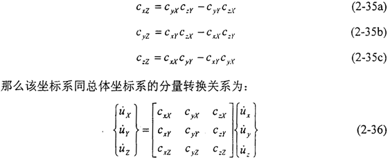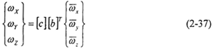 將上面的轉(zhuǎn)換矩陣定義為[c],則邊界條件中的平動速度可按(2-36)式轉(zhuǎn)化為局部坐標(biāo)中的分量,轉(zhuǎn)動角速度按下式定義: