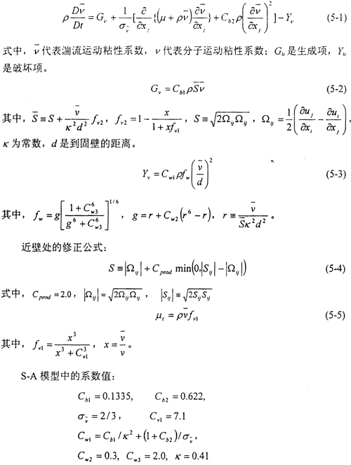 S-A湍流模型是Spalart和Allmaras在1992年提出的一方程湍流模型,具體描述如下: