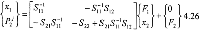 在方程(4.25)中{F1},{F2}為對(duì)應(yīng)于{x1},{x2}的廣義力向量,其中也包括了齒輪聯(lián)軸器內(nèi)外齒所受到的力和力矩。{Pj}則僅由徑向軸承提供的油膜反力組成。當(dāng){F1},{F2}和{x2}已知時(shí),可解得{x1},{Pj}。