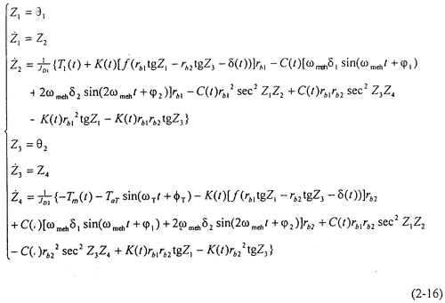 當(dāng)不考慮偏心質(zhì)量,而只考慮存在齒輪齒側(cè)間隙時(shí),方程組(2-14)可化為: