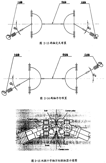 將雙聯(lián)十字軸萬(wàn)向聯(lián)軸器的這兩種布置形式,用文字描述如下: