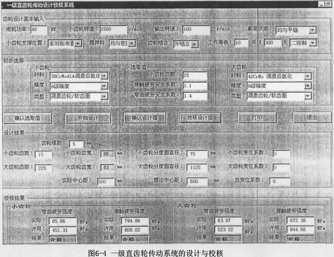 本系統(tǒng)根據(jù)企業(yè)的要求,將行業(yè)的普遍需求和企業(yè)的特殊需求結合起來,既具有通用性,又具有專用性。通用性表現(xiàn)為可以對任意類型的圓柱齒輪嚙合對(包括直齒輪、斜齒輪之、行星齒輪的內嚙合和外嚙合等等)進行校核,專用性表現(xiàn)為針對一級、二級直齒輪和斜齒輪和斜齒化嚙合傳動系統(tǒng)的設計與校核。