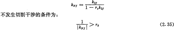 另外,當(dāng)選用半徑為Td的刀具加工內(nèi)齒圈齒廓時,在齒根處可能發(fā)生切削干涉(過渡切削)。同樣由式(2.24)可計算出曲線H2在對應(yīng)于齒根處的相對曲率k2f,齒廓曲線HN在齒根處的相對曲率kNf為: