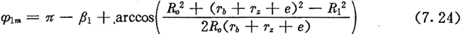 上式中h1、h2、W1和W2都是擺動中心與內(nèi)外滾子中心相對位置的參數(shù),見圖7.2(a)。