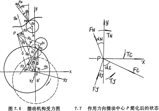 力FJ對于擺動機構(gòu)的擺動中心P點的扭矩TJ是逆時針方向,數(shù)值為:
