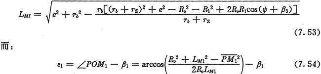 上式中的LMI表示激波器與內(nèi)滾子的接觸點(diǎn)M1離轉(zhuǎn)動中心O的距離,可從圖7.6中的△OBM1求得: