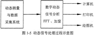 信號是動態(tài)測量和動態(tài)分析的對象。動態(tài)測量和動態(tài)分析的過程,實(shí)質(zhì)上就是信號采集、轉(zhuǎn)換、存貯和處理的過程,廣義上屬于信息論的范疇。動態(tài)信號處理過程示意圖如圖1-5所示。