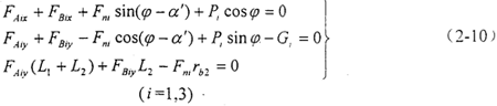 對作用于偏置環(huán)板上的平面力系,可列出靜力平衡方程: