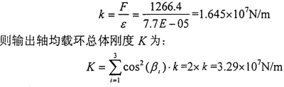由上述的輸入軸均載環(huán)的實(shí)際結(jié)構(gòu)參數(shù),可以求出輸入軸均載環(huán)環(huán)弧段的剛度為: