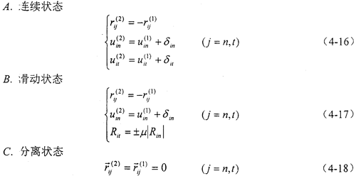 用rij和uij分別表示輪齒在第i個(gè)接觸點(diǎn)局問坐標(biāo)系j(j=n,t)方向上的接觸力分量和位移分量,局部坐標(biāo)系如圖4-12所示,上標(biāo)(1)、(2)分別表示主動(dòng)內(nèi)齒輪和從動(dòng)外齒輪,則