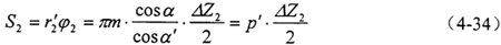 φ2角所對(duì)應(yīng)的節(jié)圓弧長(zhǎng)為: