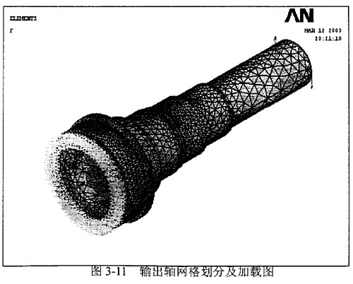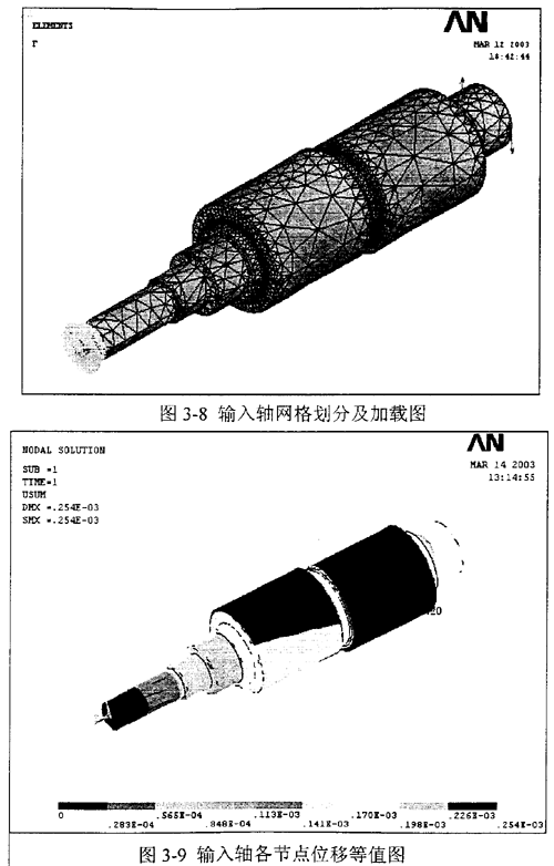 3.3.2.2輸入輸出軸的強度分析 同樣將Pro/ENGINEER中創(chuàng)建的輸入軸和輸出軸模型以IGES格式導入ANSYS中,并作適當拓撲修補,完成預處理中實體模型的建立。