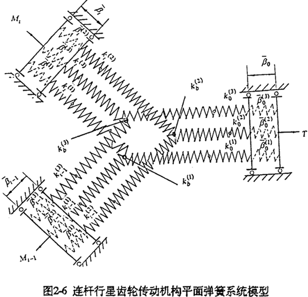 國科2-3所示為一多相并列連桿行星齒輪過約束機構。為了得到與靜不定次數(shù)相對應的S個補充方程,必考慮各構件間、各相機構間、以及多齒承載的位移協(xié)調要求,這是分析具有多余聯(lián)系體系受力的一般方法。為此,可先將機構轉化為受力、變形等效的結構(幾何不變體系),然后用結構力學的方法分析系統(tǒng)、構件位移協(xié)調的條件。