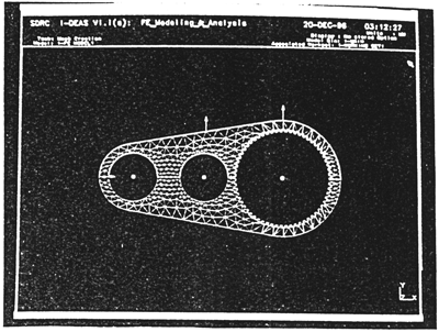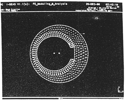 從上節(jié)介紹知,彈性體的柔度系數(shù)矩陣可以通過有限元法,加單位載荷來計算確定。因此,偏心套及內(nèi)齒行星傳動齒板的柔度計算,實際上是對其進行有限元建模分析。下面以SHQ40型三環(huán)傳動為例,在SUN工作站上使用I-DEAS軟件中的有限元模塊計算偏心套及齒板的柔度系數(shù)。