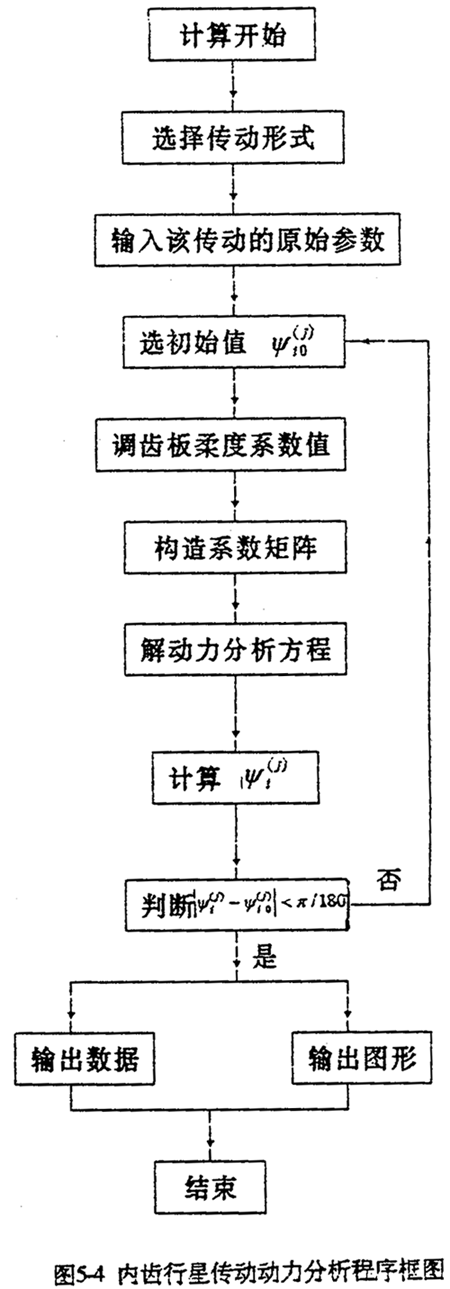 在不計各種誤差且機構變形很小時,將以上參數(shù)代入三環(huán)減速器的非線性動力分析方程式(5-1)~(5-8)、(5-18)、(5-19)、(5-22)~(5-23)等方程,在計算機上求解,就可求得三環(huán)減速器各載荷隨工況角φ的變化規(guī)5-4為計算程圖。
