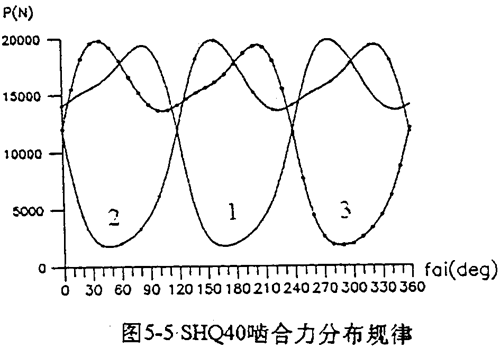 由表看出,各齒板過相同死點位置之不理時的嚙合力相等;某片齒板過死點位置時,其它兩片齒板超前或者范后干該片嚙合120°與水平軸對稱。因此,這兩片的嚙合力相等,從圖5-4也反映了這一點,這與實際情況相符合。