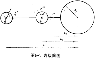 齒板簡圖如圖6-1所示。以齒板支承軸孔與偏心套的接觸點為參考點,則齒板質(zhì)心的位移為