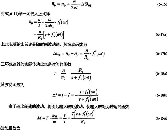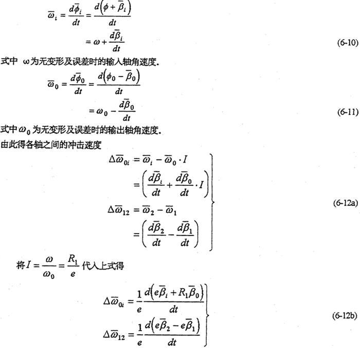 由于減速器機構(gòu)的變形及各構(gòu)件的誤差,使各傳動軸的角速度及角加速度不再滿足條件式(6-8)及式(6-9),亦在運轉(zhuǎn)過程中各軸之間存在角速度及角加速度的沖擊現(xiàn)象。該沖擊將直接導致系統(tǒng)振動,使輸出速度產(chǎn)生波動、降低其輸出的穩(wěn)定性,并產(chǎn)生沖擊載荷。