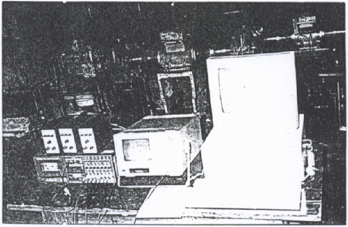 實驗時,通過控制臺操縱,交直流機組1發(fā)出直流電壓設(shè)直流測功機1按恒定轉(zhuǎn)速帶動整個傳動系統(tǒng)運轉(zhuǎn)。SHQ-2及汽車變速箱將被測試件SHQ-1輸出的轉(zhuǎn)速升高后驅(qū)動直流測功機2發(fā)出直流電流,該電流經(jīng)交直流機組2逆變?yōu)楣ゎl交流電返回電網(wǎng),完成整個電功率封閉傳動鏈?刂茀⑼ㄟ^控制交直流機組電壓、電流、改變傳動系統(tǒng)的轉(zhuǎn)速轉(zhuǎn)矩大小。被測信號由加速度傳感器提取,經(jīng)由電荷放大器放大后,進入磁帶記錄儀及CF-355頻譜分析儀進行分析計算。電功率流封齒輪傳動實驗臺如圖6-9所示。