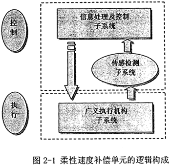 柔性速度補償單元由兩部分組成,包括機械運動子系統(tǒng)、信息處理及控制子系統(tǒng),其中后者又包括信息處理與控制、傳感檢測兩部分。其邏輯組成如圖2-l所示。