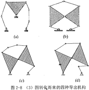 由(3)圖,取不同的構(gòu)件為機架,經(jīng)過特定化后,也可轉(zhuǎn)化為四種導(dǎo)出機構(gòu),如圖2-8。