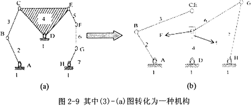 (1)一般化,是指將具有機件和運動副的原始機械裝置,轉(zhuǎn)化為只有一般化連桿和一般化(運動)副的機構(gòu),這樣形成的閉環(huán)鏈稱為一般化(運動)鏈。