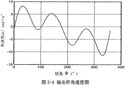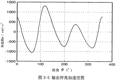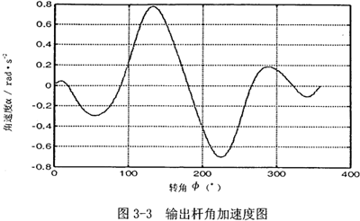 首先由圖3-2可以看到,若機構(gòu)結(jié)構(gòu)參數(shù)設(shè)計恰當,并且調(diào)整中間滑塊3偏移到合適的位置時,可在一定范圍內(nèi),產(chǎn)生一個反向的速度波適度抵消原速度波動。再由圖3-3可知,在未加入第二自由度時,加速度變化值不大,說明阻力矩和電機主動力矩不會受到大的影響,不致導(dǎo)致原機械系統(tǒng)的各項參數(shù)發(fā)生大的變化。