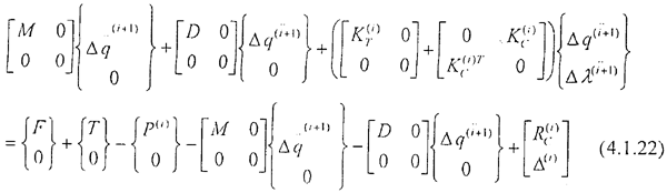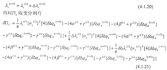 [△q(i+1)△λ(i+1)]1×18=[{ △qk(i+1)}T{△qA(i+1)}{ △qB(i+1)}{ △qC(i+1)}{ △qD(i+1)}T{△λk(i+1)}]      (4.1.29)