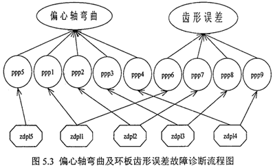 根據(jù)以上分析,本文用圖形化的智能故障診斷預(yù)報(bào)系統(tǒng)(INCON FIDPS), 建立了雙環(huán)減速器偏心軸彎曲及環(huán)板齒形誤差兩種故障的推理流程。如圖5.3 所示。