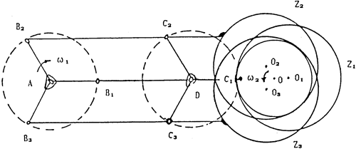 三環(huán)減速器是近年來(lái)出現(xiàn)的一種應(yīng)用前景較為廣泛的雙曲柄輸入式漸開(kāi)線少齒差行星齒輪減速器,由圖2-1、圖2-2、圖2-3可知,它實(shí)質(zhì)上是由平面四桿機(jī)構(gòu)和內(nèi)嚙合齒輪副組成的齒輪連桿組合傳動(dòng)機(jī)構(gòu),因此,引起三環(huán)減速器振動(dòng)的原因除了有齒輪機(jī)構(gòu)產(chǎn)生的外,還應(yīng)考慮平面四桿機(jī)構(gòu)所引起的振動(dòng)。