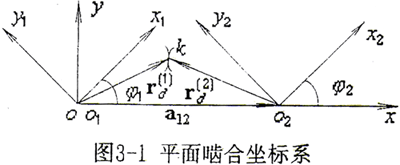 定軸平面嚙合傳動(dòng)坐標(biāo)系如圖3-1所示。