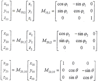 式中 M21——S1、S2坐標(biāo)系轉(zhuǎn)換矩陣