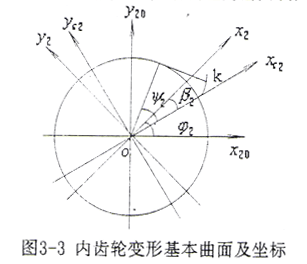 設(shè)內(nèi)齒輪變形基本曲面為漸開線曲面,其端面上的齒面線及坐標(biāo)如圖3-3所示。
