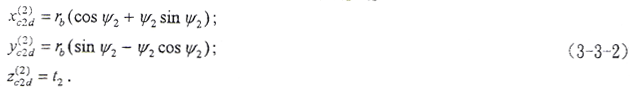 xc2軸通過漸開線在基圓上的起點(diǎn)。(o,xc2,yc2,zc2)坐標(biāo)系下的曲面方程為