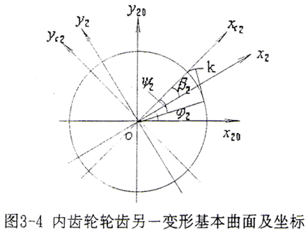 為了求解變形,還需求得內(nèi)齒輪輪齒另一齒面的變形基本曲面方程,如圖3-4所示。