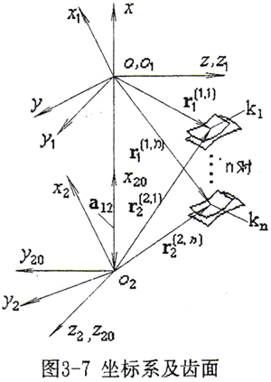 坐標(biāo)系及齒面如圖3-7所示。