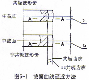 數(shù)學(xué)方法上,兩曲面的逼近是“極大極小問(wèn)題”,雖已有這方面的理論探討,但還沒(méi)有成熟的計(jì)算軟件。本文采用截面曲線逼近的方法(如圖5-1所示),將軸向坐標(biāo)離散,求得各截面上曲線逼近的δ值,再根據(jù)δ值的軸向分布形態(tài),確定擬合的函數(shù)形式,以最小二乘法擬合出鼓度曲線。